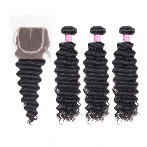 Egg Curly Double Drawn Virgin Human Hair Bundles With 4x4 Lace Closure