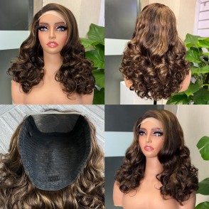 Ombre 5x5 Glueless Double Drawn Burmese Curl Transparent Lace Closure Wig