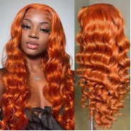 Orange Ginger Color Human Hair T-Part Lace Wig Silky Straight
